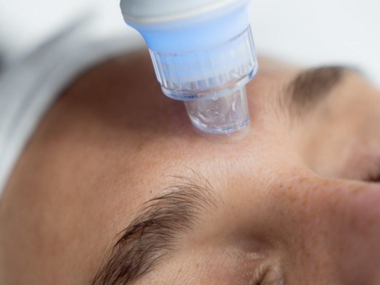 Aquafacial ist eine nicht-invasive Tiefenreinigung der Haut, die abgestorbene Zellen entfernt, Poren von Schmutz und Talg befreit und die Haut gleichzeitig mit Seren, Vitaminen und Feuchtigkeit versorgt, was zu einem sofort frischeren, glatteren und jünger aussehenden Hautbild führt und bei vielen Problemen wie Unreinheiten und fahler Haut hilft.